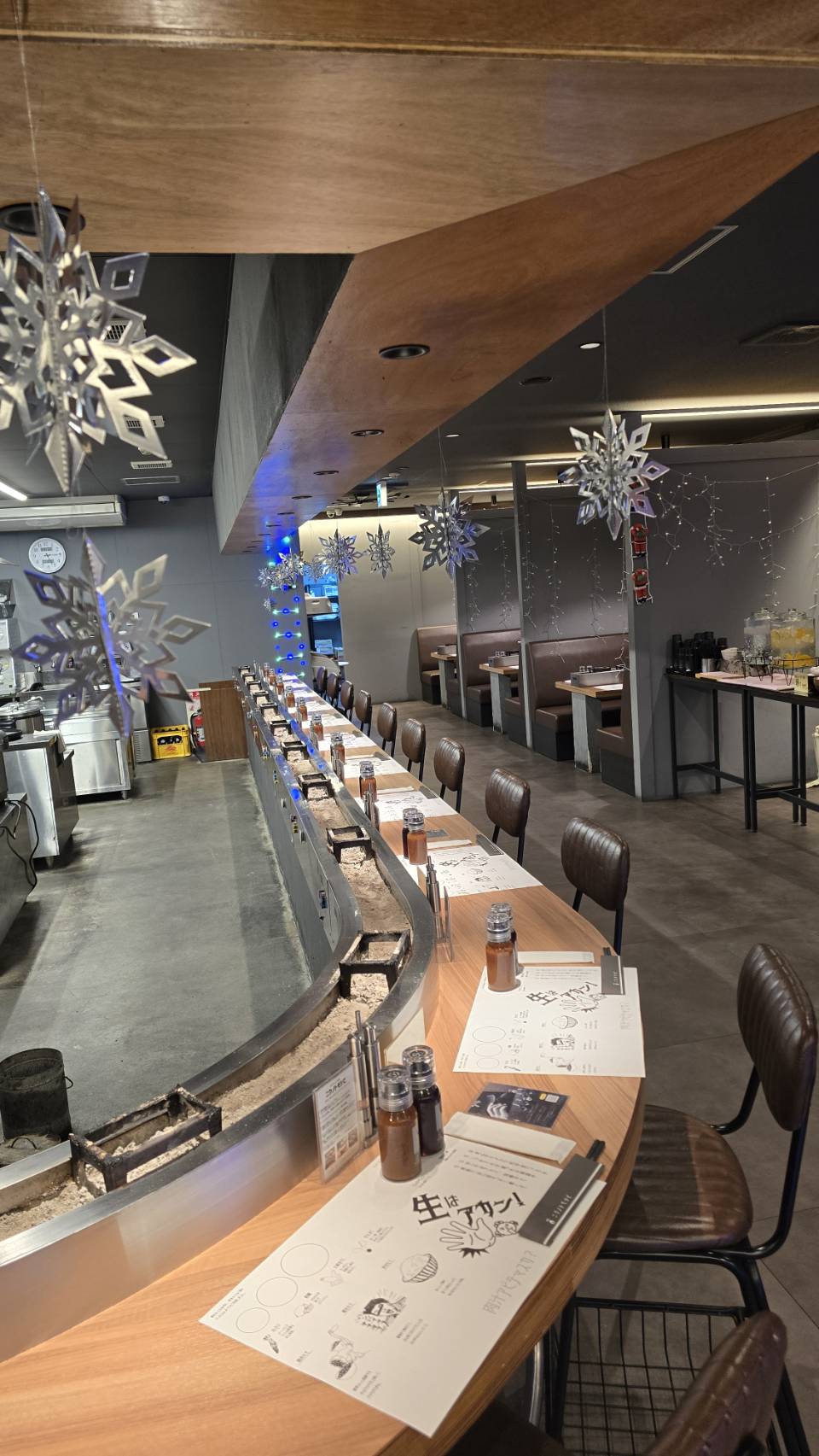 柔らかな照明が店内を優しく包み込み、グレーを基調とした落ち着いた空間が、よりムーディーな雰囲気を醸し出します。12月なら、店内に輝く3メートルのクリスマスツリーと美しいイルミネーションが、さらにロマンティックな空間を演出。
