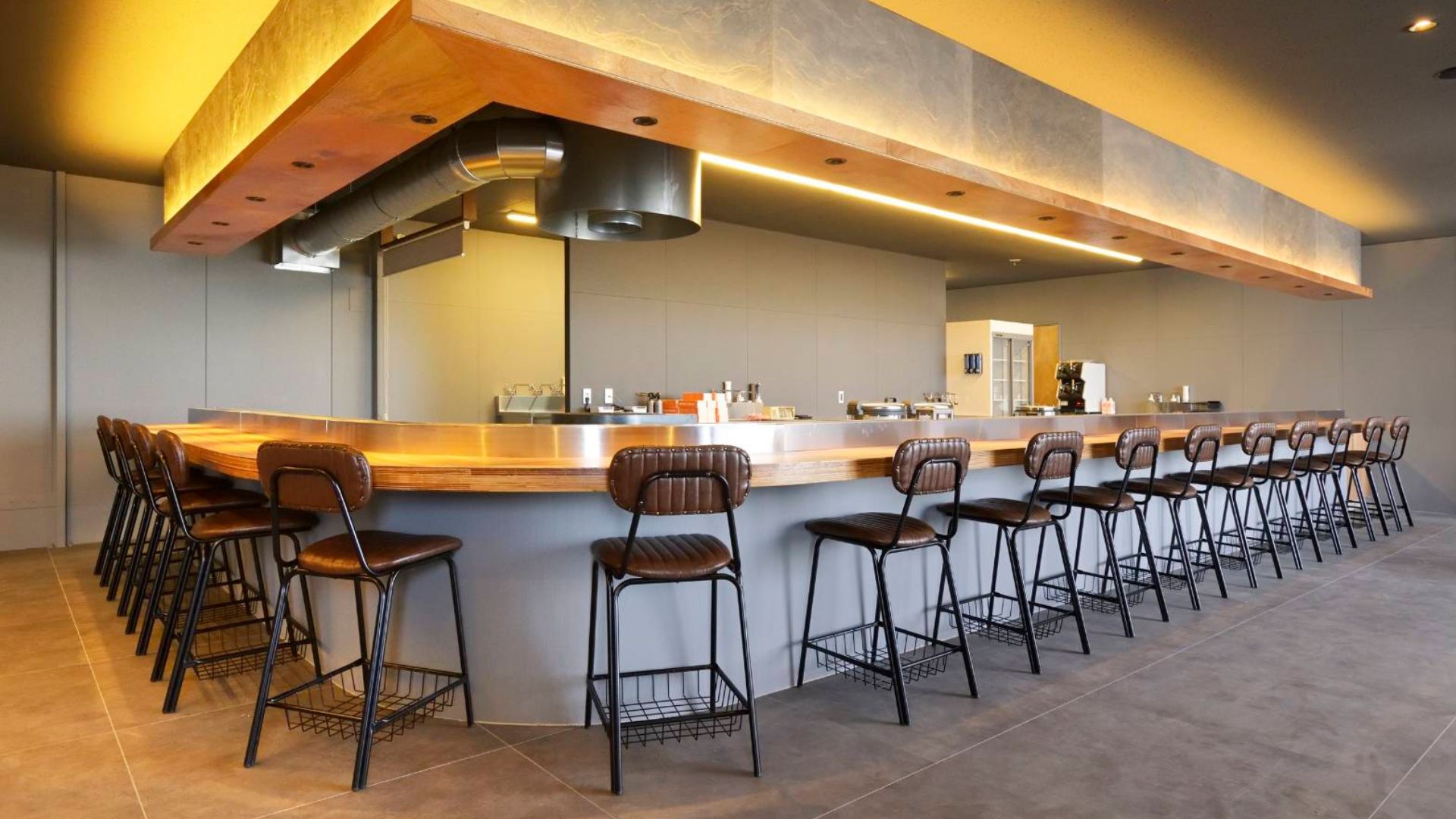 平日ランチタイムは比較的空いていることが多いので、カップルでゆっくりとした時間を過ごすのにも最適です。店内はグレーを基調とした落ち着いた雰囲気で、カウンターは木を使った温かみのある内装。柔らかな照明が店内を優しく包み込み、特別な雰囲気を演出しています。