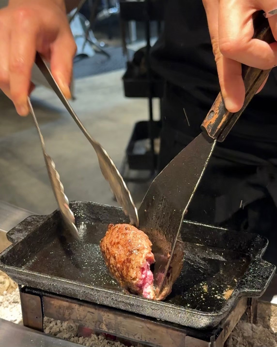 厳選されたA5ランク和牛を100%使用したハンバーグを、自分で鉄板で焼き上げるという新しいスタイルで提供。